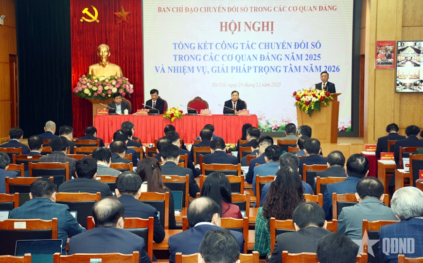 Sáng 29-12, Ban chỉ đạo chuyển đổi số trong các cơ quan Đảng tổ chức Hội nghị tổng kết công tác chuyển đổi số trong các cơ quan Đảng năm 2025 và nhiệm vụ, giải pháp năm 2026 theo hình thức trực tiếp tại trụ sở Văn phòng Trung ương Đảng, kết nối tới hơn 3.000 điểm cầu trong toàn quốc. Đồng chí Trần Cẩm Tú, Ủy viên Bộ Chính trị, Thường trực Ban Bí thư, Trưởng ban chỉ đạo chủ trì hội nghị.