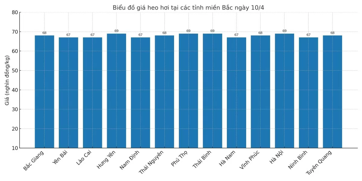 | Biểu đồ giá heo hơi tại các tỉnh miền Bắc ngày 10/4. |