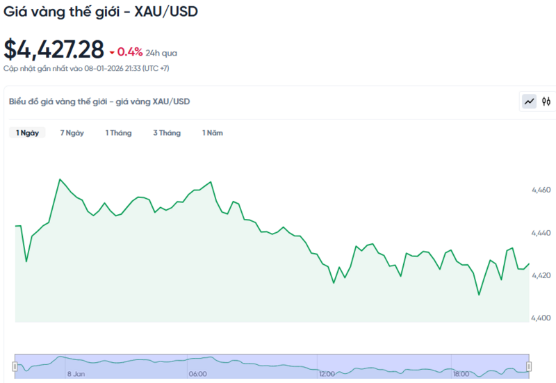 Giá vàng thế giới hôm nay 09/01/2026 và biểu đồ biến động giá vàng thế giới 24h qua