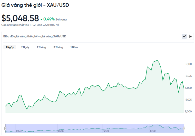 Giá vàng thế giới hôm nay 12/02/2026 và biểu đồ biến động giá vàng thế giới 24h qua