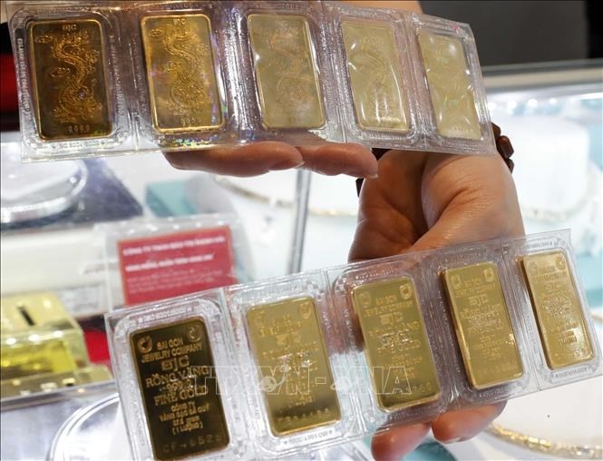 Giá vàng hôm nay (chiều 3-10): Vàng SJC tiếp đà giảm. Ảnh minh họa: TTXVN |