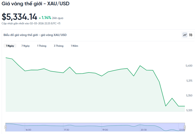 Giá vàng thế giới hôm nay 03/03/2026 và biểu đồ biến động giá vàng thế giới 24h qua