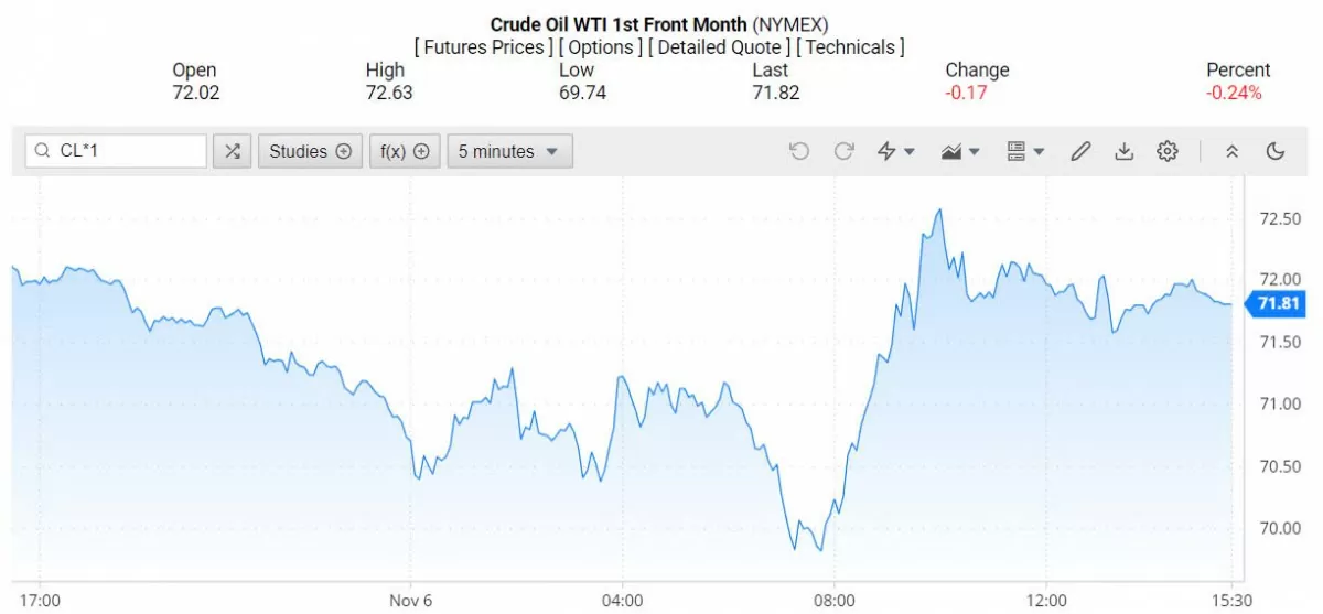 Ghi nhận trên Oilprice lúc 5h ngày 7/11/2024 (theo giờ Việt Nam), giá dầu WTI ở mốc 71,81 USD/thùng, giảm 0,24% (tương đương giảm 0,17 USD/thùng).