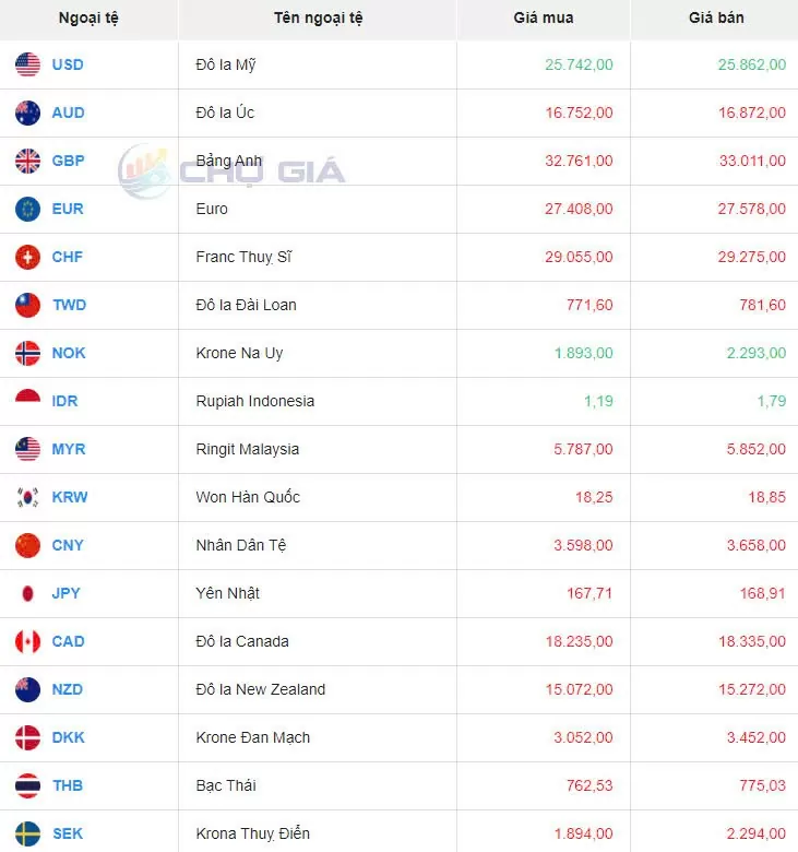 Tỷ giá USD tại Ngân hàng Vietcombank mua vào - bán ra hiện ở mức 25,140 – 25,470 đồng, tăng 10 đồng so với ngày hôm qua. Giá mua và bán USD hiện tại nằm trong khoảng từ 24.000 - 25.500 VND/USD.