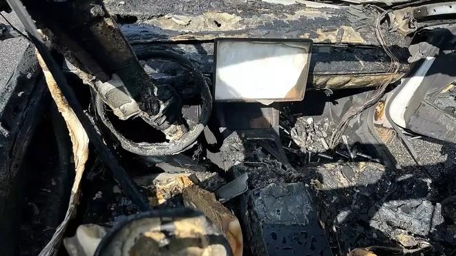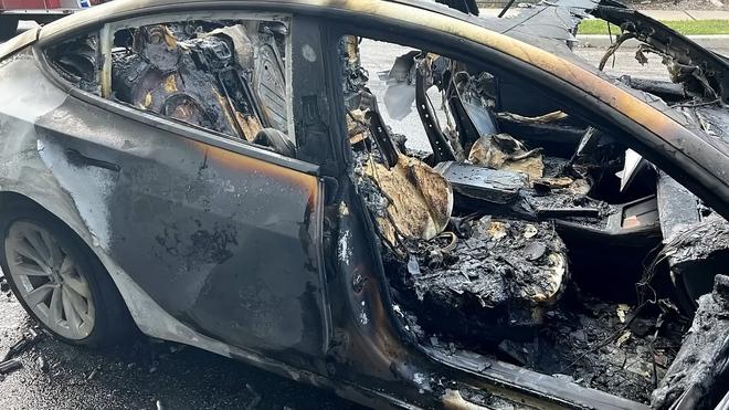 Chiếc Tesla Model 3 bị cháy rụi.