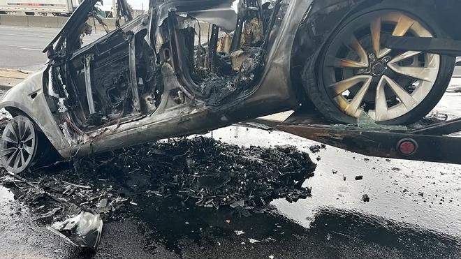 Dẫu vậy, sức nóng từ vụ cháy này cao tới nỗi khay pin của chiếc Tesla Model 3 đã bị nóng chảy, khiến các viên pin rời ra khỏi xe. Tuy nhiên, đây lại là một điều tốt, bởi pin được cho là bộ phận gây ra hỏa hoạn, khi pin tách rời ra khỏi xe thì có thể vận chuyển phần xác xe đi dễ dàng hơn, để lại bộ phận nguy hiểm riêng biệt để dễ xử lý.