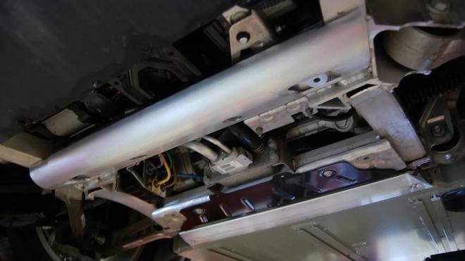 Tesla đã gia cố thêm các tấm kim loại để bảo vệ pack pin khỏi các vật lạ trên đường.