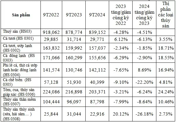 Số liệu nhập khẩu thủy sản của Singapore 9 tháng đầu năm 2024 từ thế giới và Việt Nam theo các nhóm hàng