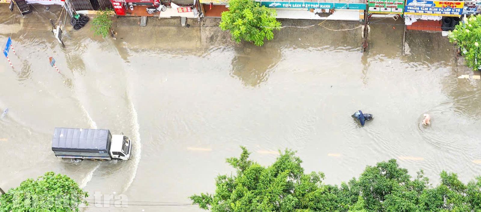Mực nước tại nhiều tuyến đường đã dâng cao đến nửa mét, thậm chí chạm ngưỡng 1 mét ở các khu vực trũng, khiến các phương tiện không thể di chuyển.