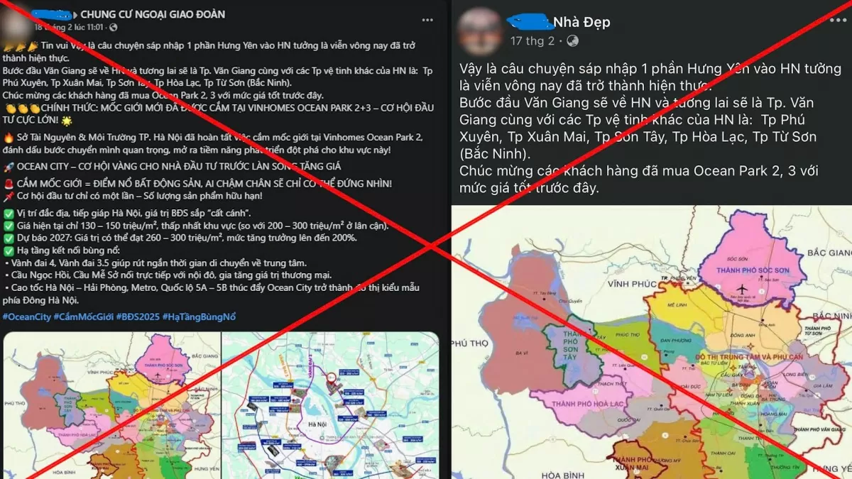 Như vậy, việc quảng cáo sáp nhập các tỉnh (tên các tỉnh thành) và lan tỏa thông tin huyện Văn Giang (tỉnh Hưng Yên) về Hà Nội đồng thời sẽ lên thành phố là hoàn toàn sai sự thật.