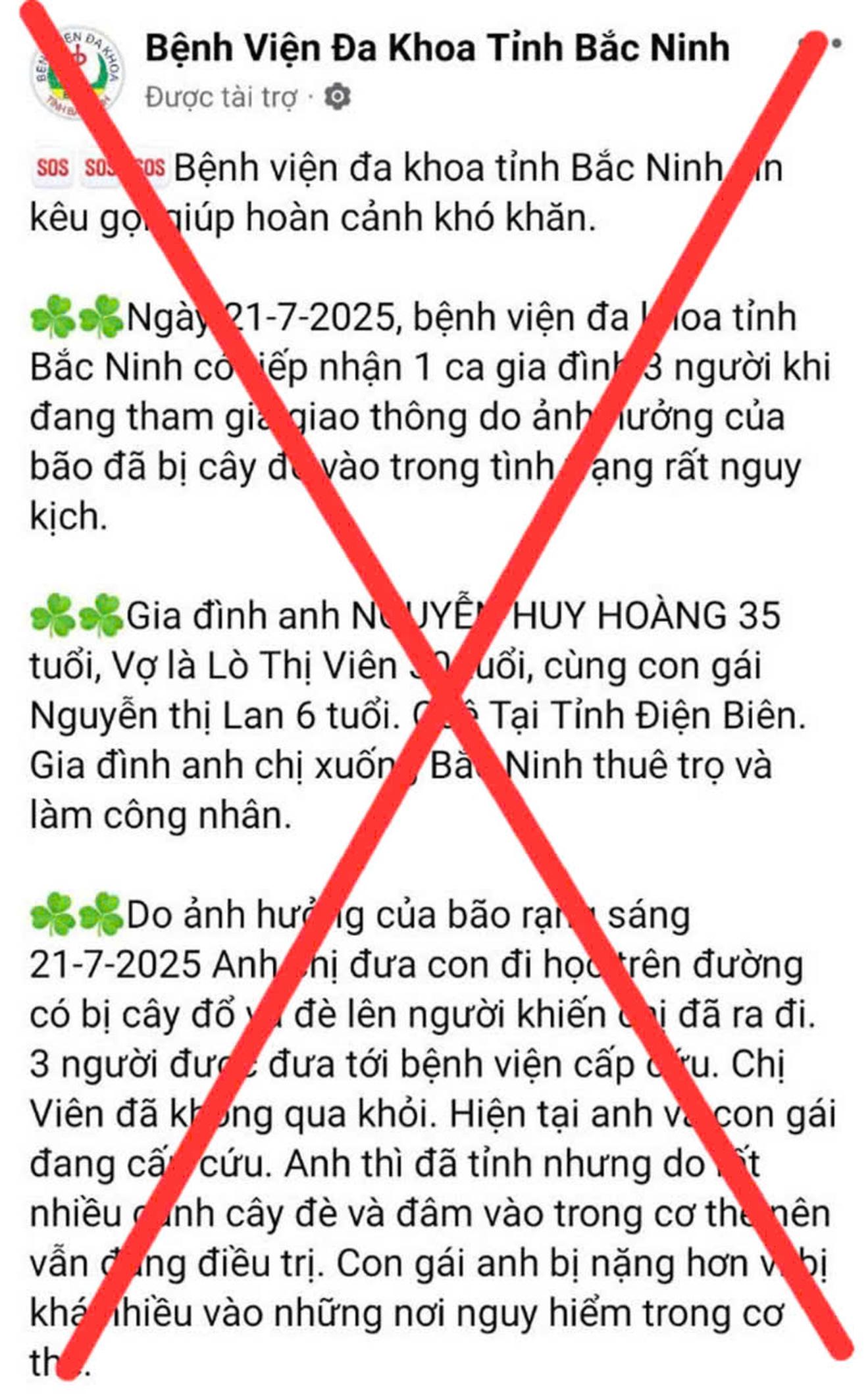 Cảnh báo lợi dụng bão số 3 và mạo danh bệnh viện Đa khoa Bắc Ninh để kêu gọi từ thiện