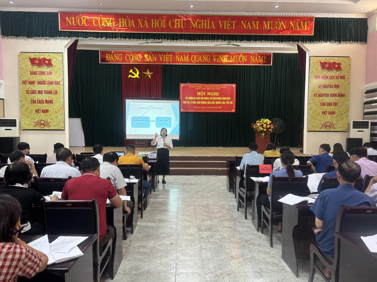 Tập huấn rà soát hộ nghèo, hộ cận nghèo năm 2025 tại cụm xã: Lý Bôn, Nam Quang, Bảo Lâm, Quảng Lâm, Yên Thổ. Ảnh: Thu Hương