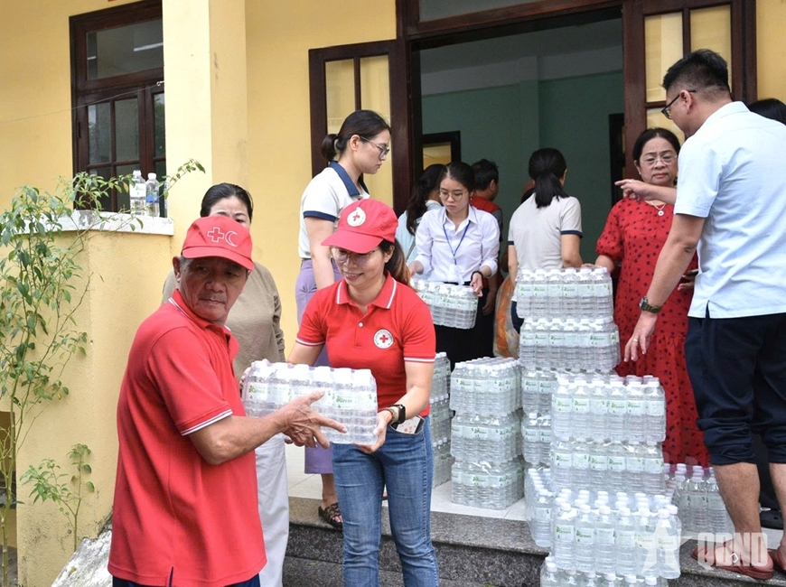 Hội Chữ thập đỏ TP Đà Nẵng vận chuyển nước uống hỗ trợ người dân vùng lũ.  |