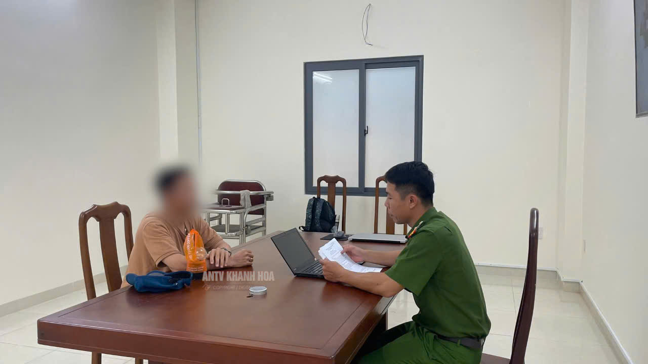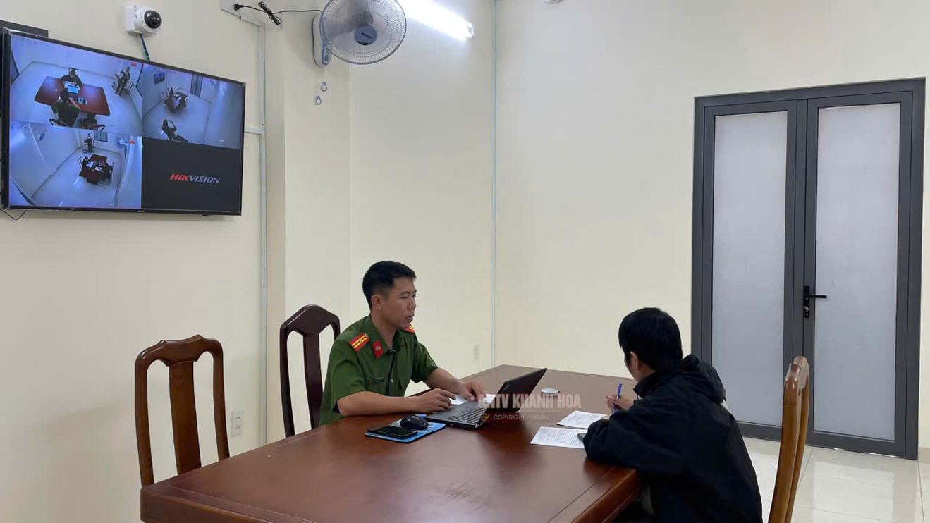 Công an tỉnh Khánh Hòa làm việc với ông Huy. Ảnh: ANTV khánh Hòa
