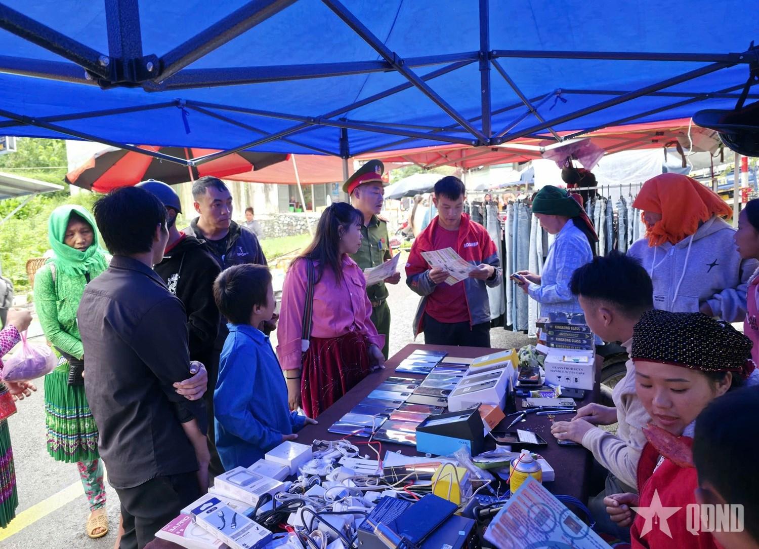 Công an xã biên giới Sơn Vĩ (Tuyên Quang) đẩy mạnh tuyên truyền phòng chống tội phạm tại chợ phiên