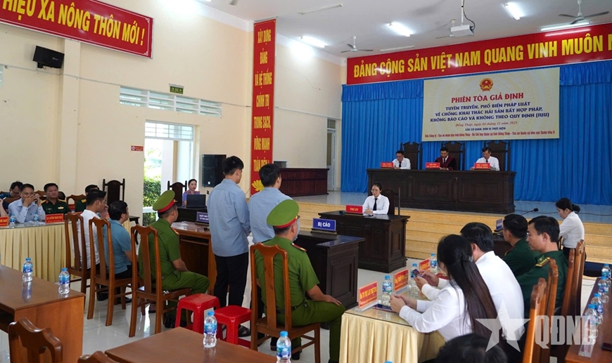 Ngày 4-11, tại xã Gia Thuận, Tòa án nhân dân tỉnh, Bộ CHQS tỉnh Đồng Tháp, Tòa án Quân sự khu vực Quân khu 9 và Báo Công lý phối hợp tổ chức tuyên truyền, phổ biến pháp luật bằng hình thức phiên tòa giả định, đối với vụ án hình sự về việc khai thác thủy sản bất hợp pháp, không báo cáo và không theo quy định (IUU) và xâm phạm việc phát triển bền vững ngành thủy sản.