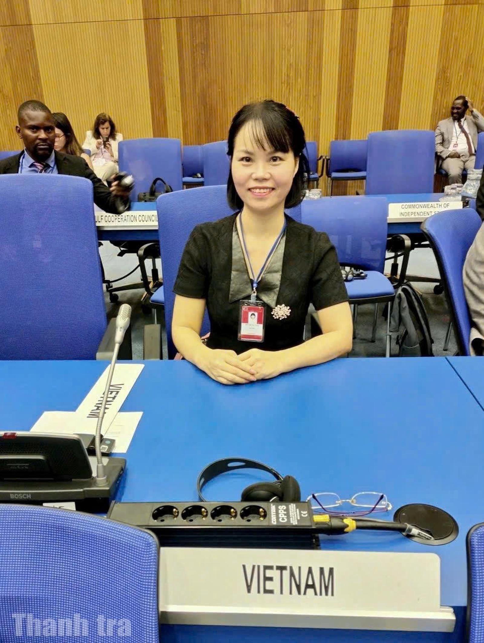 Thanh tra viên chính Nguyễn Thu Trang, Cục Phòng, Chống tham nhũng, lãng phí, tiêu cực (Cục IV, Thanh tra Chính phủ), công chức đại diện đoàn Việt Nam tham dự các cuộc họp trong khuôn khổ thực thi UNCAC tại Cộng hòa Áo, tháng 9/2025. Ảnh: Thu Trang