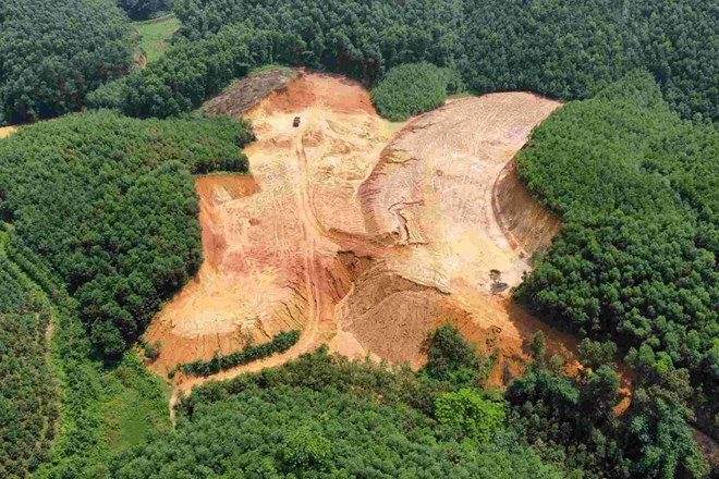 Một người dân địa phương cho biết: "Máy xúc, xe tải đã được huy động đến để đào đất khoảng 3 tháng nay, họ múc đồi xuống san lấp mặt bằng để làm trang trại chăn nuôi".