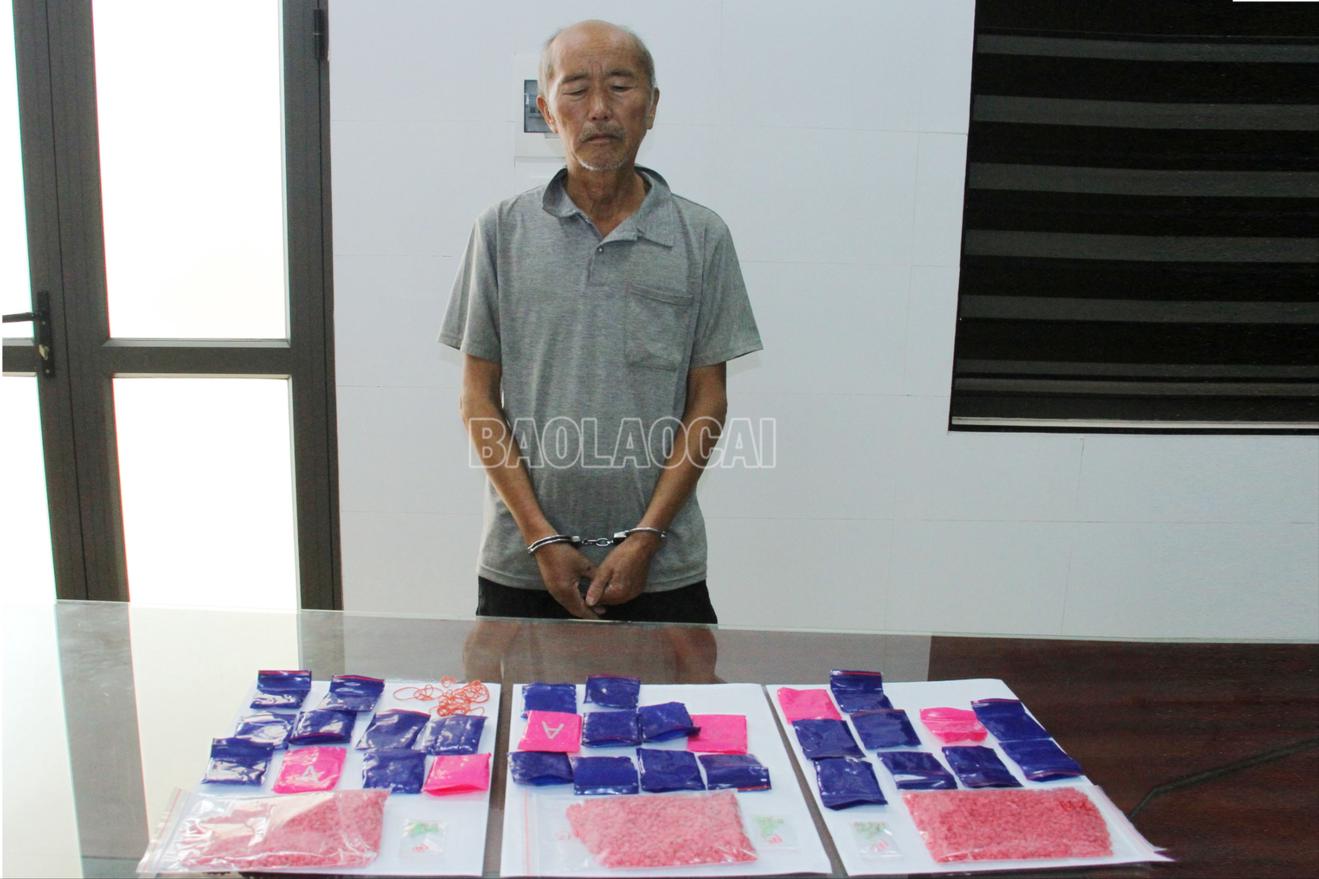 Đối tượng Hầu Chẩn Hòa cùng tang vật. Ảnh: Báo Lào Cai