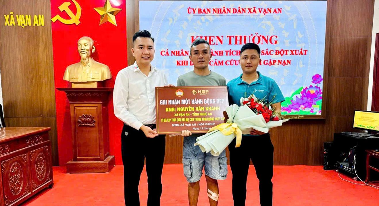 Sáng 13/4, UBND xã Vạn An (Nghệ An) tổ chức khen thưởng đột xuất anh Nguyễn Trọng Khánh vì hành động dũng cảm lao xuống sông Lam cứu sống hai mẹ con gặp nạn. Nghĩa cử kịp thời cứu người không chỉ giữ lại sự sống trong khoảnh khắc mong manh mà còn lan tỏa mạnh mẽ giá trị nhân văn trong cộng đồng.