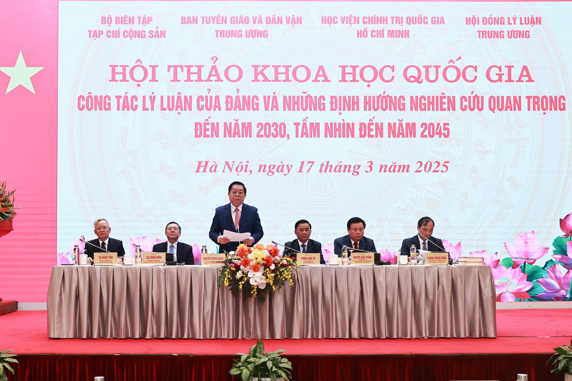 Hội thảo quốc gia “Công tác lý luận của Đảng và những định hướng nghiên cứu quan trọng đến năm 2030, tầm nhìn đến năm 2045”. Ảnh: P.Hải