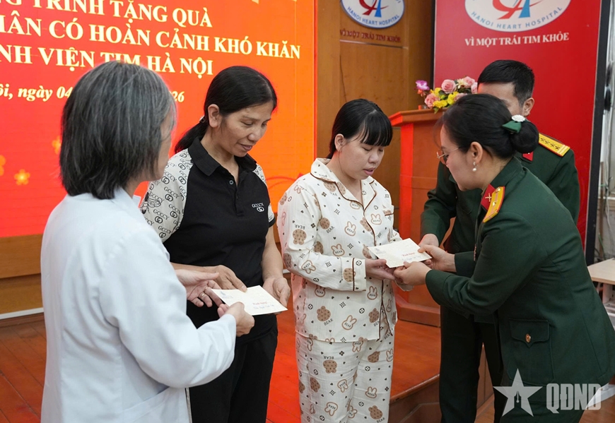 Được biết, Hội Phụ nữ cơ sở Cục Đối ngoại đã vận động cán bộ, hội viên quyên góp ủng hộ với tổng số tiền là 35 triệu đồng để dành tặng cho các bệnh nhân có hoàn cảnh khó khăn tại Bệnh viện Tim Hà Nội. Trong đó, trao 10 triệu đồng tặng bệnh nhi Ngô Diệu Linh (sinh ngày 5-1-2026) đang điều trị tại bệnh viện và được tiến hành phẫu thuật mổ tim chiều ngày 4-3; trao 2 phần quà cho 2 bệnh nhân có bệnh lý tim bẩm sinh phức tạp, điều trị dài ngày (mỗi phần quà trị giá 5 triệu đồng) và trao 15 phần quà tặng các bệnh nhân khó khăn khác đang điều trị tại bệnh viện (mỗi phần quà trị giá 1 triệu đồng).