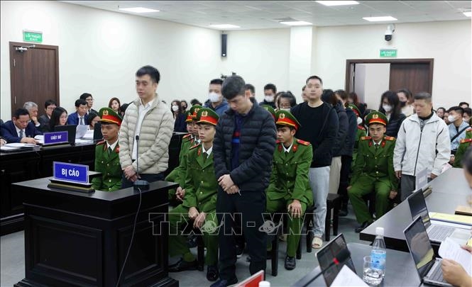 | Các bị cáo tại phiên tòa xét xử, sáng 5-1. |