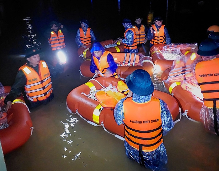 Đêm 27 và ngày 28-10, công tác ứng phó với mưa lũ trên địa bàn TP Huế được cấp ủy, chính quyền địa phương và các đơn vị LLVT nỗ lực triển khai. Bộ CHQS TP Huế đã điều động hàng nghìn cán bộ, chiến sĩ di dời bệnh nhân, người dân và hỗ trợ nhu yếu phẩm cho các gia đình bị nước lũ bao vây, cô lập.
