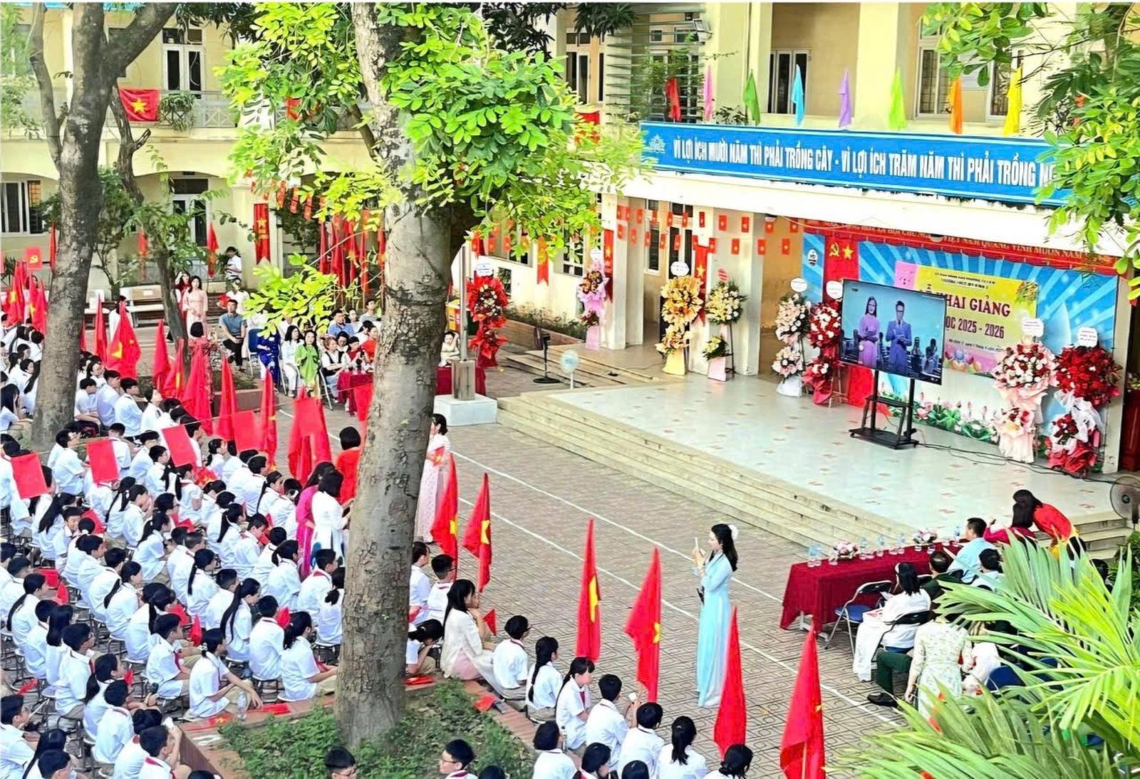 Lễ khai giảng năm học 2025 - 2026 tại Trường THCS Mỹ Đình 2. Ảnh: THCS Mỹ Đình 2
