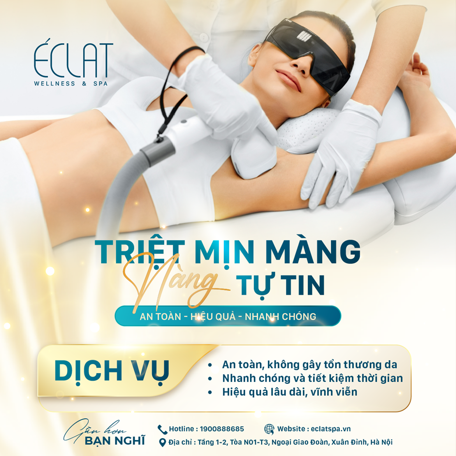 Tại ÉCLAT Wellness & Spa, dịch vụ triệt lông được thực hiện bằng công nghệ Diode laser, tác động trực tiếp tới nang lông để ức chế sự phát triển từ gốc.