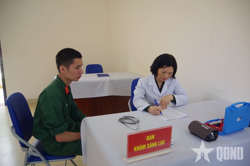 | Chiến sĩ mới được khám sàng lọc trước khi tiêm phòng. |
