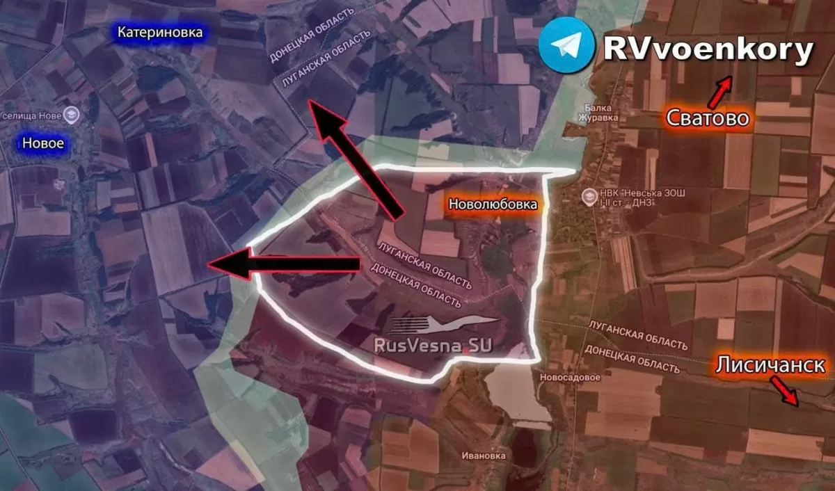 Các đợt tấn công của quân đội Nga tập trung vào ngã ba Donetsk - Lugansk, đặc biệt tại khu vực Balka Zhuravka và Novosadove. Các nguồn tin quân sự Ukraine cũng xác nhận, Nga đã kiểm soát làng Novolyubovka (Lugansk) và đạt được tiến triển rõ rệt.