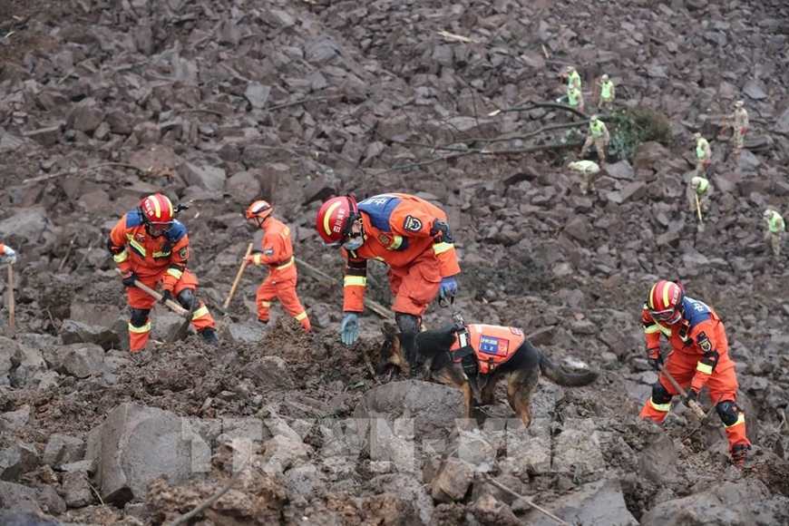 Lực lượng cứu hộ tìm kiếm người mất tích tại hiện trường một vụ lở đất ở tỉnh Tứ Xuyên, Tây Nam Trung Quốc ngày 9-2-2025. |