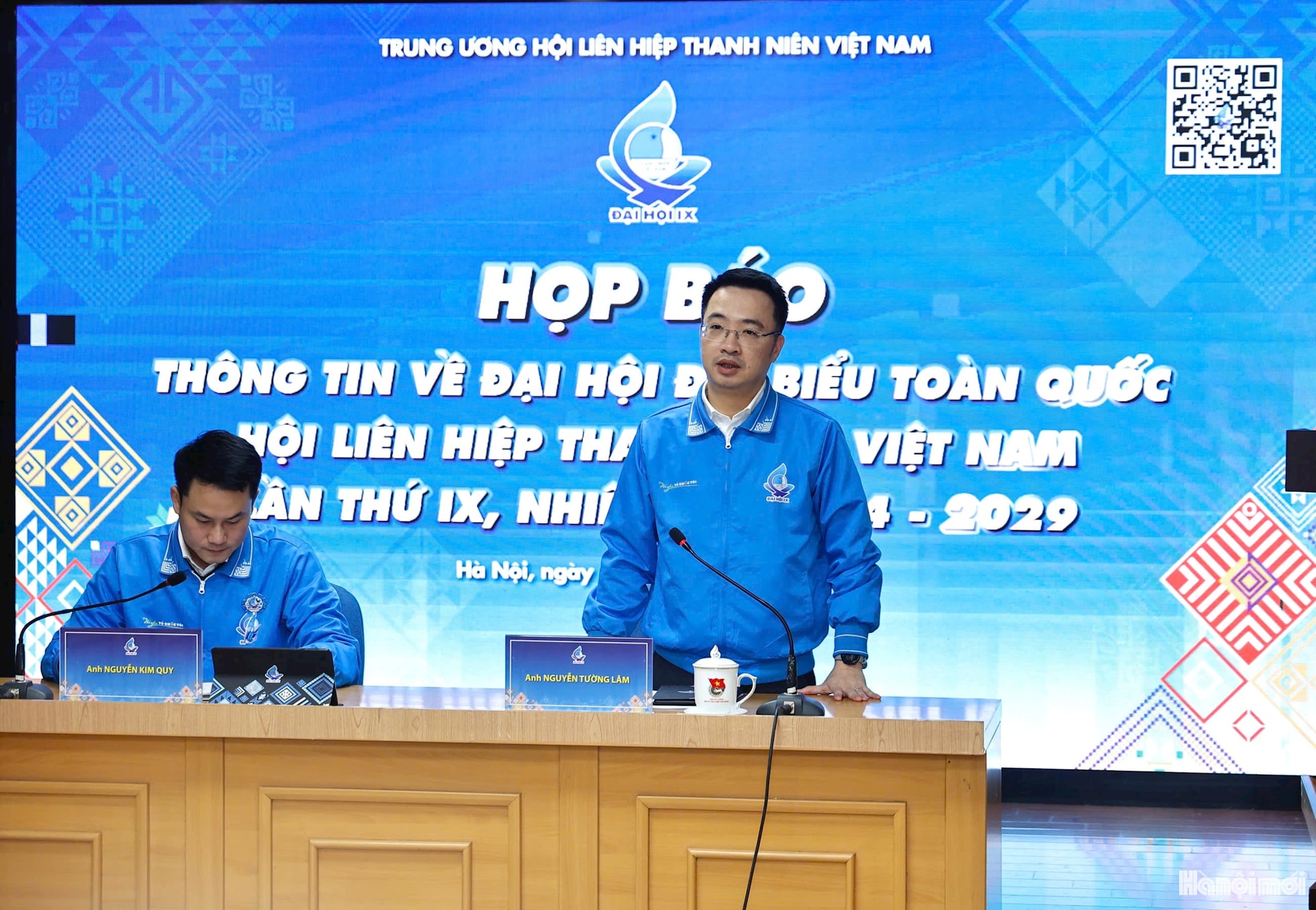 Bí thư Trung ương Đoàn, Phó Chủ tịch Trung ương Hội Liên hiệp Thanh niên Việt Nam Nguyễn Tường Lâm và Phó Chủ tịch Thường trực Trung ương Hội Liên hiệp Thanh niên Việt Nam Nguyễn Kim Quy, đồng chủ trì họp báo.