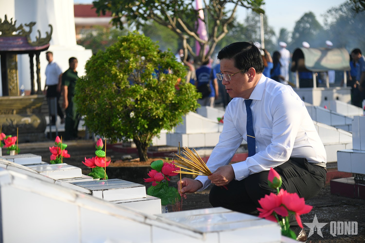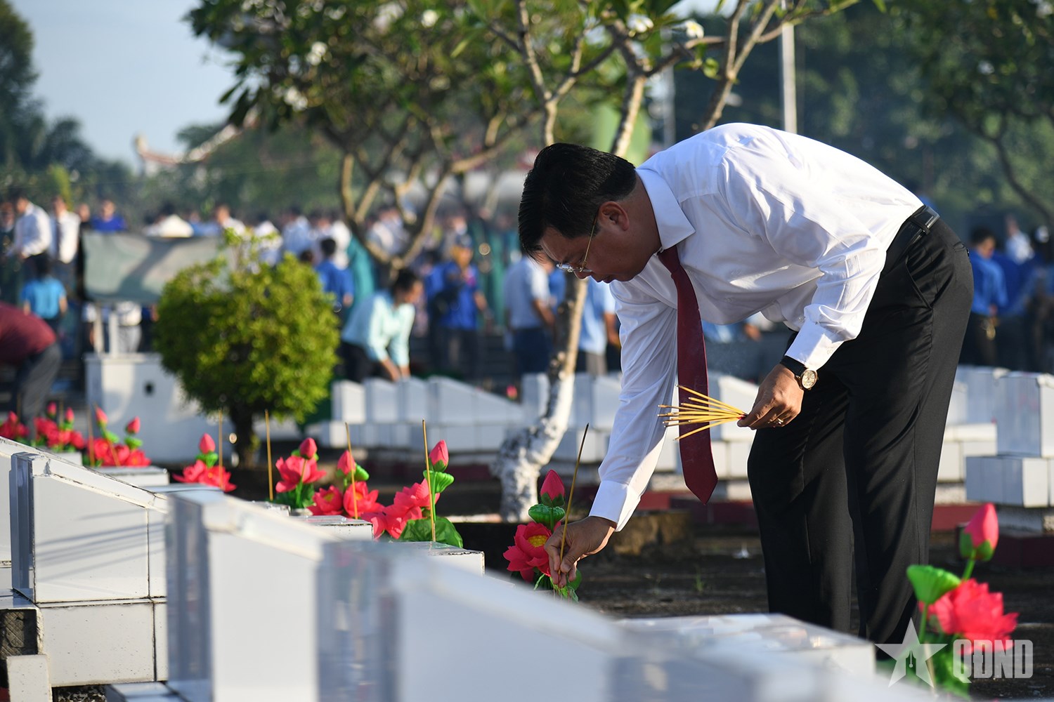 Tại lễ viếng, các đại biểu đã thành kính dâng hoa, dâng hương và dành phút mặc niệm trước Tượng đài Tổ quốc ghi công để tưởng nhớ công lao to lớn của các anh hùng liệt sĩ đã anh dũng chiến đấu và hy sinh vì sự nghiệp giải phóng dân tộc, thống nhất đất nước; thắp hương tri ân trên từng phần mộ liệt sĩ đang an nghỉ tại Nghĩa trang liệt sĩ của tỉnh.