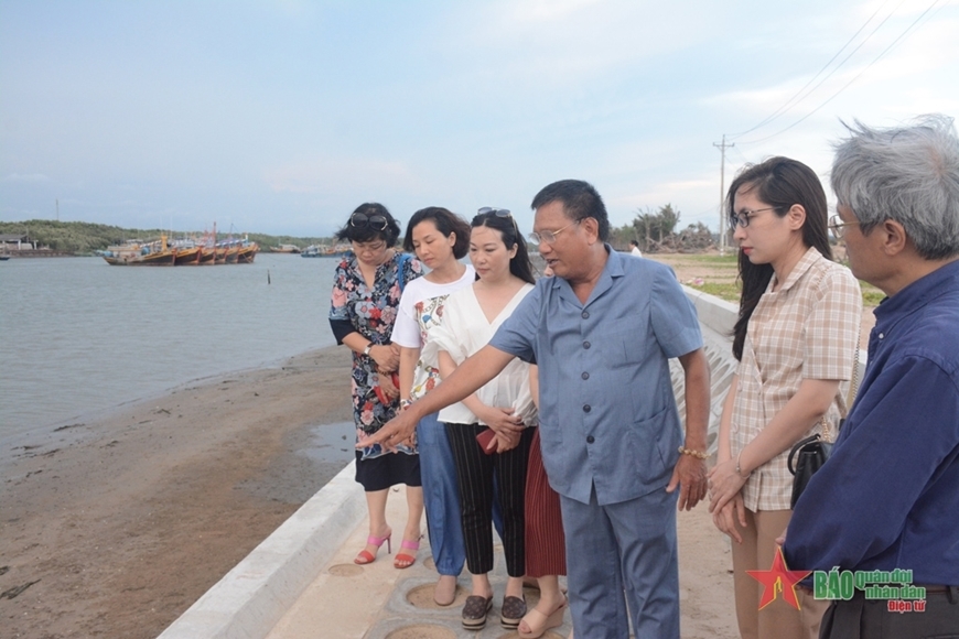 | Anh hùng Lao động Hoàng Đức Thảo giới thiệu công trình tuyến kè sông Ray sử dụng bê tông cốt sợi phi kim tại tỉnh Bà Rịa - Vũng Tàu (trước đây). |