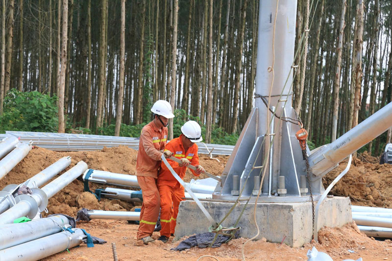 Đến thời điểm hiện tại, khối lượng dựng cột hiện qua địa bàn tỉnh Lào Cai cơ bản đạt tiến độ. Nhà thầu bố trí thi công song song, đồng loạt tại các vị trí để sớm bàn giao lưới và đóng điện.
