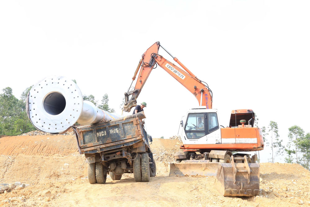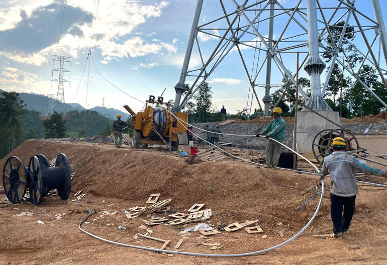 Dưới cái nắng bỏng rát giữa tháng 8, từng đoàn xe chuyên dụng, máy xúc, máy tời vẫn hoạt động không ngừng nghỉ trên các tuyến đường rừng núi Tây Bắc để thi công dự án đường dây 500kV Lào Cai – Vĩnh Yên.