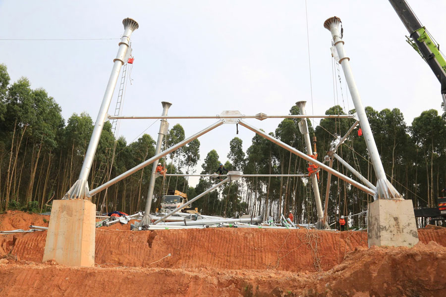 Một số vị trí như 78, 79, toàn bộ móng đặt trên đỉnh núi hình nón, mặt bằng hẹp, vật liệu phải vận chuyển rải rác từng phần.