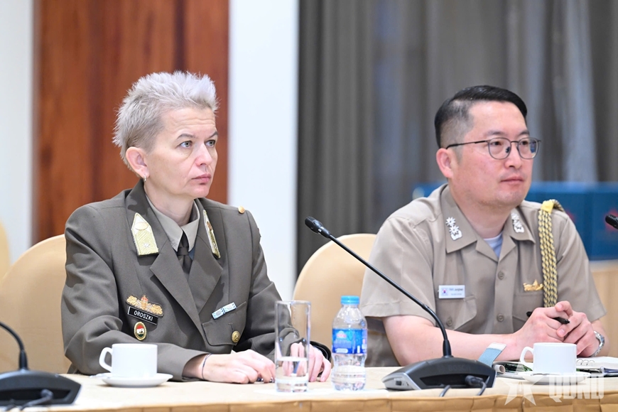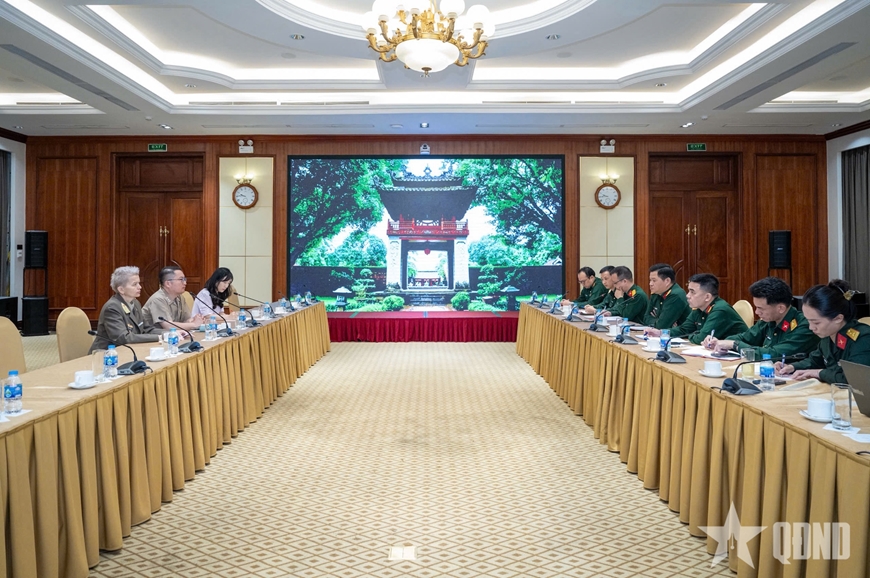 | Thiếu tá Nóra Oroszki (bên trái), Phó tùy viên Quốc phòng Hungary tại Việt Nam tham gia buổi làm việc. Ảnh: VIỆT TRUNG |