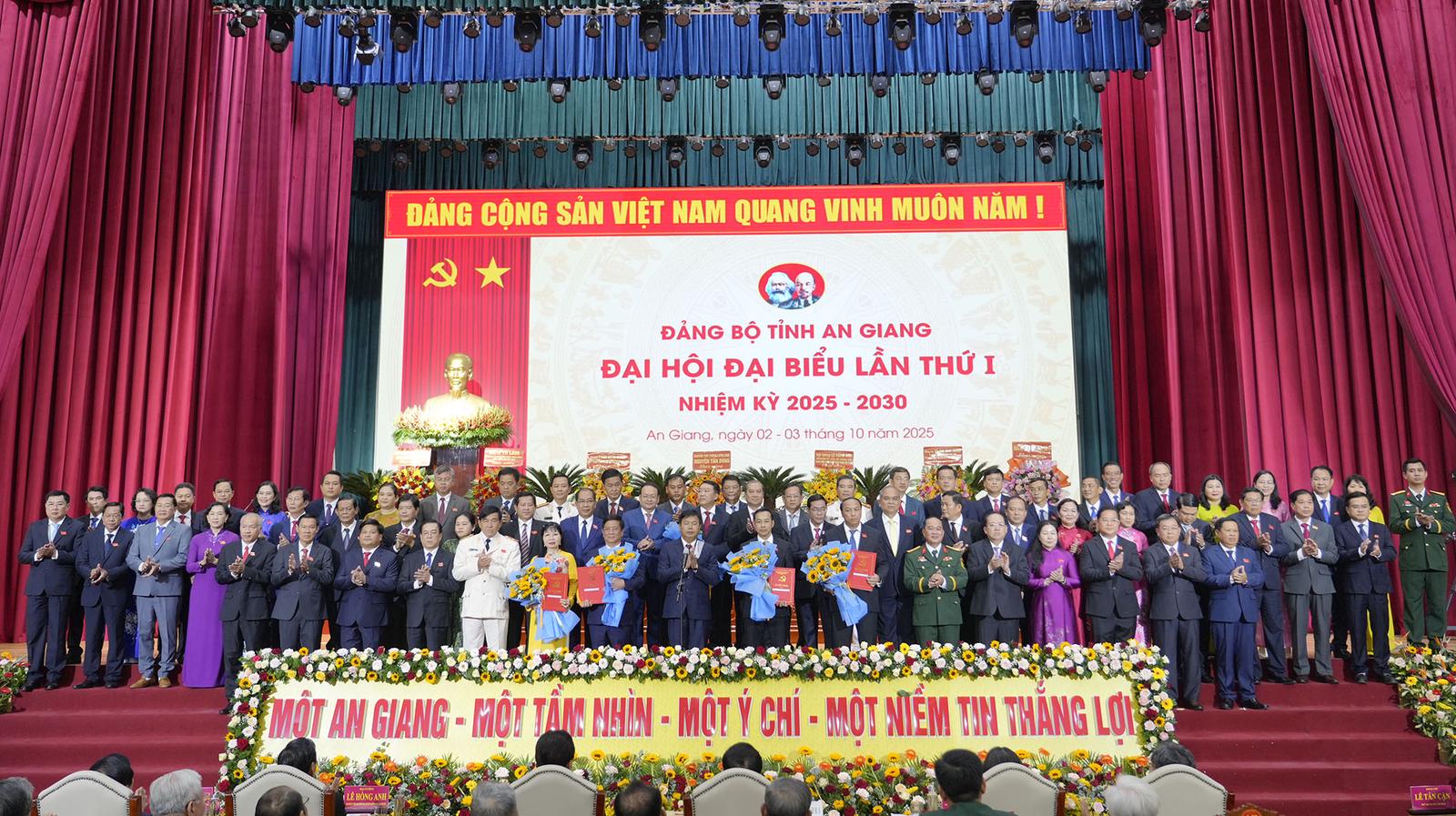 Ban Chấp hành Đảng bộ tỉnh An Giang nhiệm kỳ 2025 - 2030 ra mắt Đại hội. Ảnh: BTC