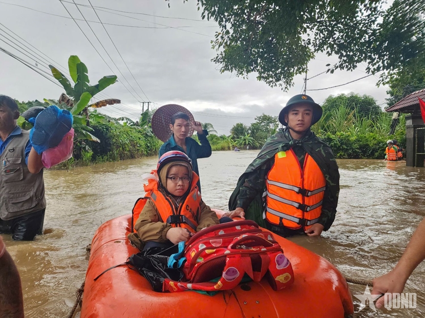 Kịp thời có mặt tại các điểm xung yếu, cán bộ, chiến sĩ Bộ CHQS tỉnh Khánh Hòa đã khẩn trương cùng chính quyền địa phương và nhân dân tuyên truyền, vận động, hỗ trợ người dân đến vị trí an toàn trong đợt mưa lớn kéo dài.