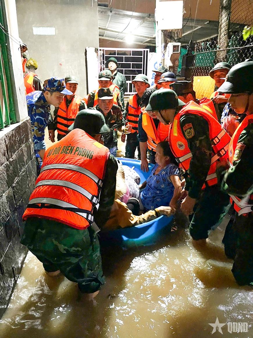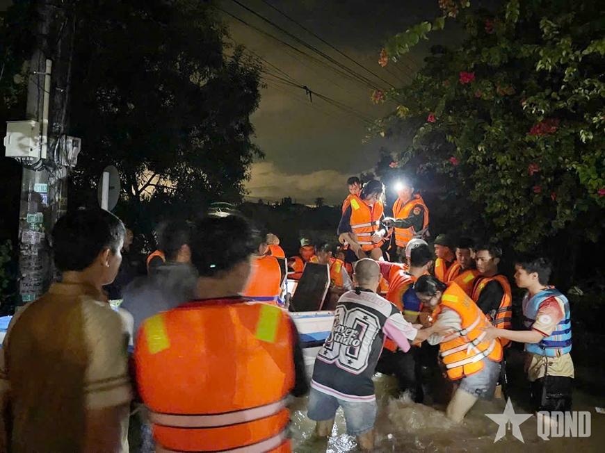 Trong đêm cùng ngày, nhiều khu vực trên địa bàn phường Hàm Thắng, tỉnh Lâm Đồng bị chia cắt do nước lũ dâng cao, Đồn Biên phòng Mũi Né tổ chức lực lượng, phương tiện hỗ trợ nhân dân ra khỏi vùng lũ lụt. Đến khoảng 4 giờ 30 phút sáng nay đã di dời được 60 người dân ra khỏi vùng nguy hiểm.