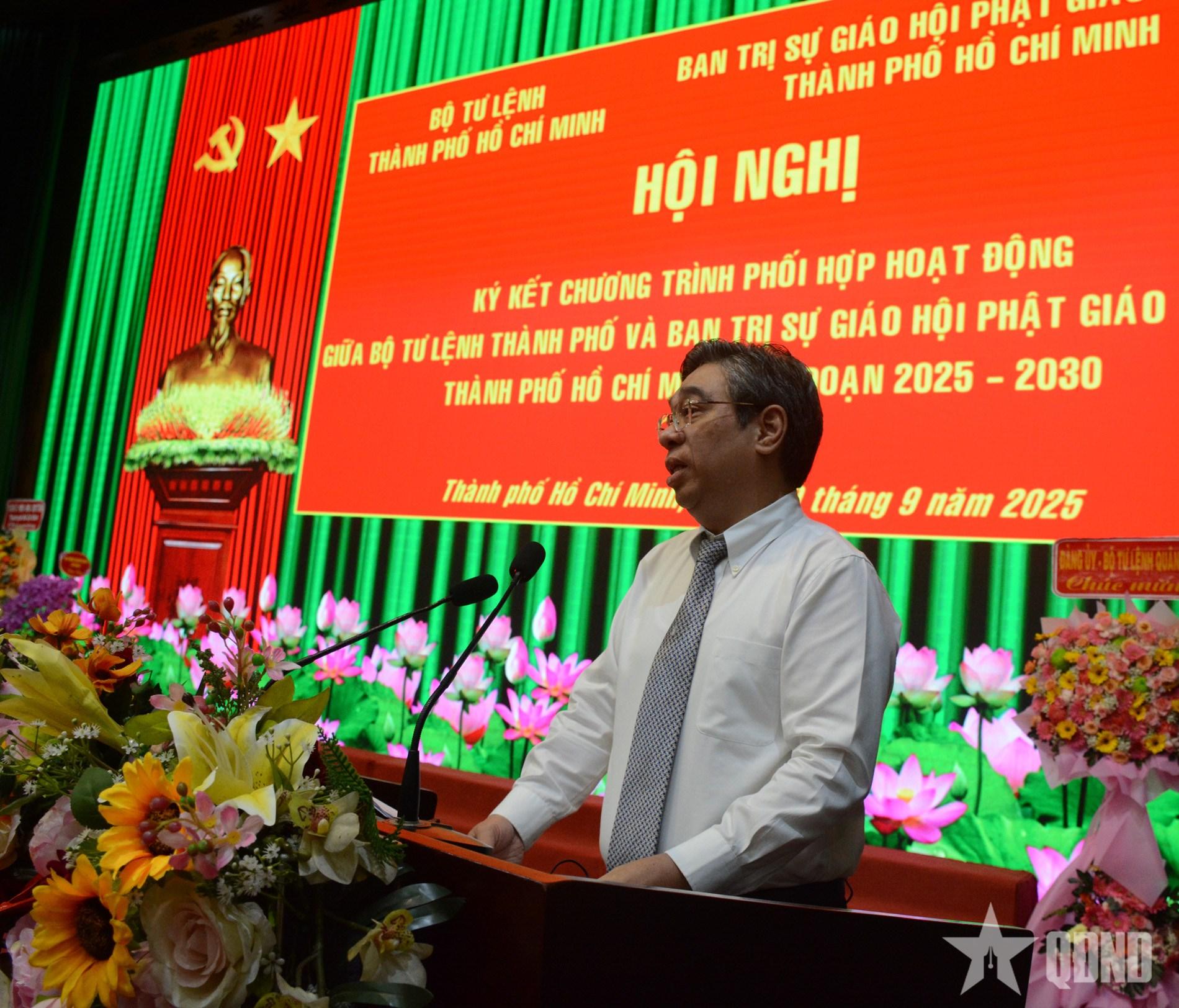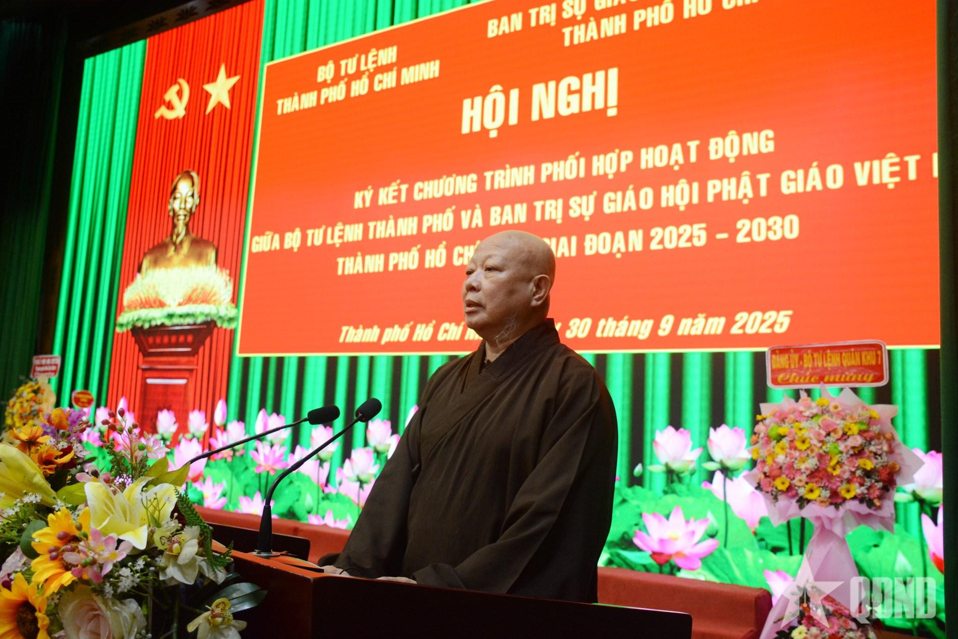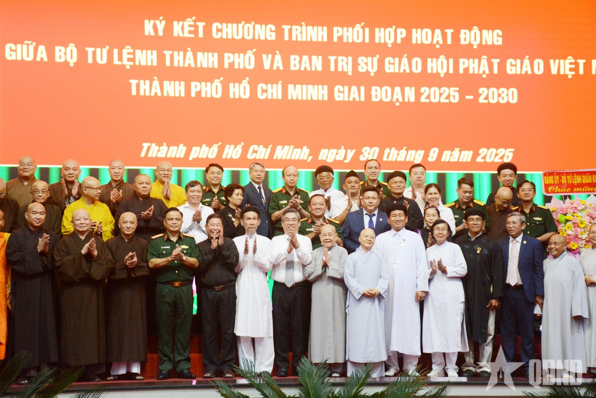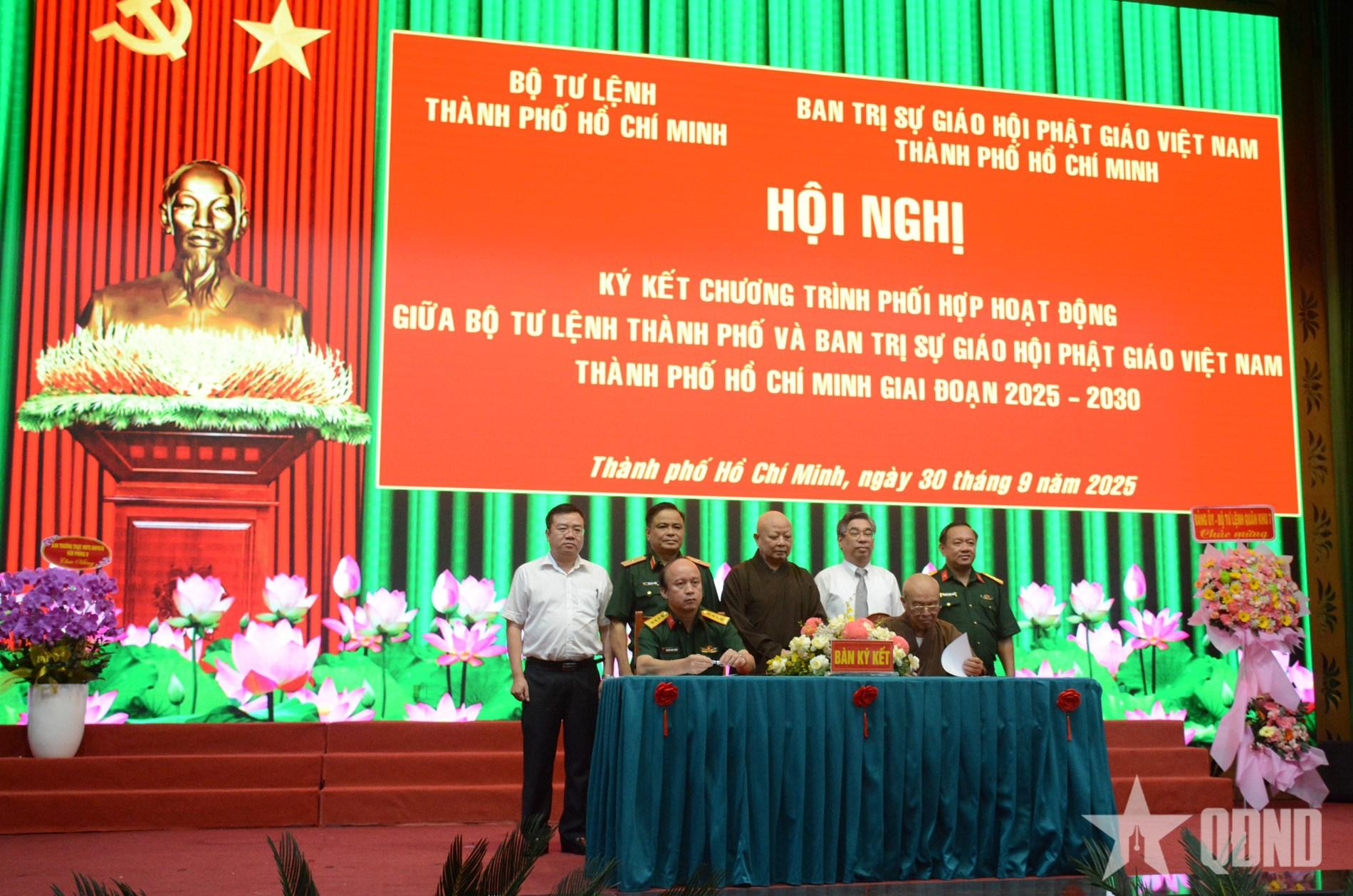 Sáng 30-9, Bộ tư lệnh TP Hồ Chí Minh và Ban Trị sự Giáo hội Phật giáo Việt Nam TP Hồ Chí Minh phối hợp tổ chức lễ ký kết chương trình phối hợp hoạt động giai đoạn 2025 - 2030.