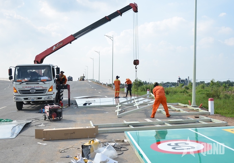 | Công nhân hoàn thiện các công đoạn để kịp thông xe kỹ thuật cao tốc Cần Thơ - Cà Mau. |