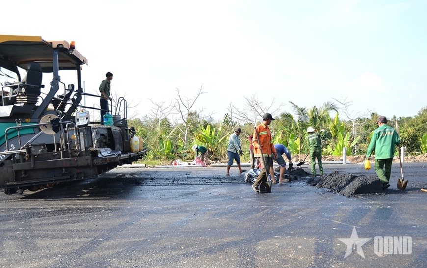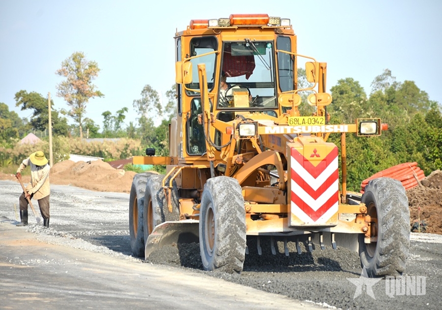 | Thực hiện một số công đoạn cuối tại nút giao IC4 cao tốc Cần Thơ - Cà Mau. |
