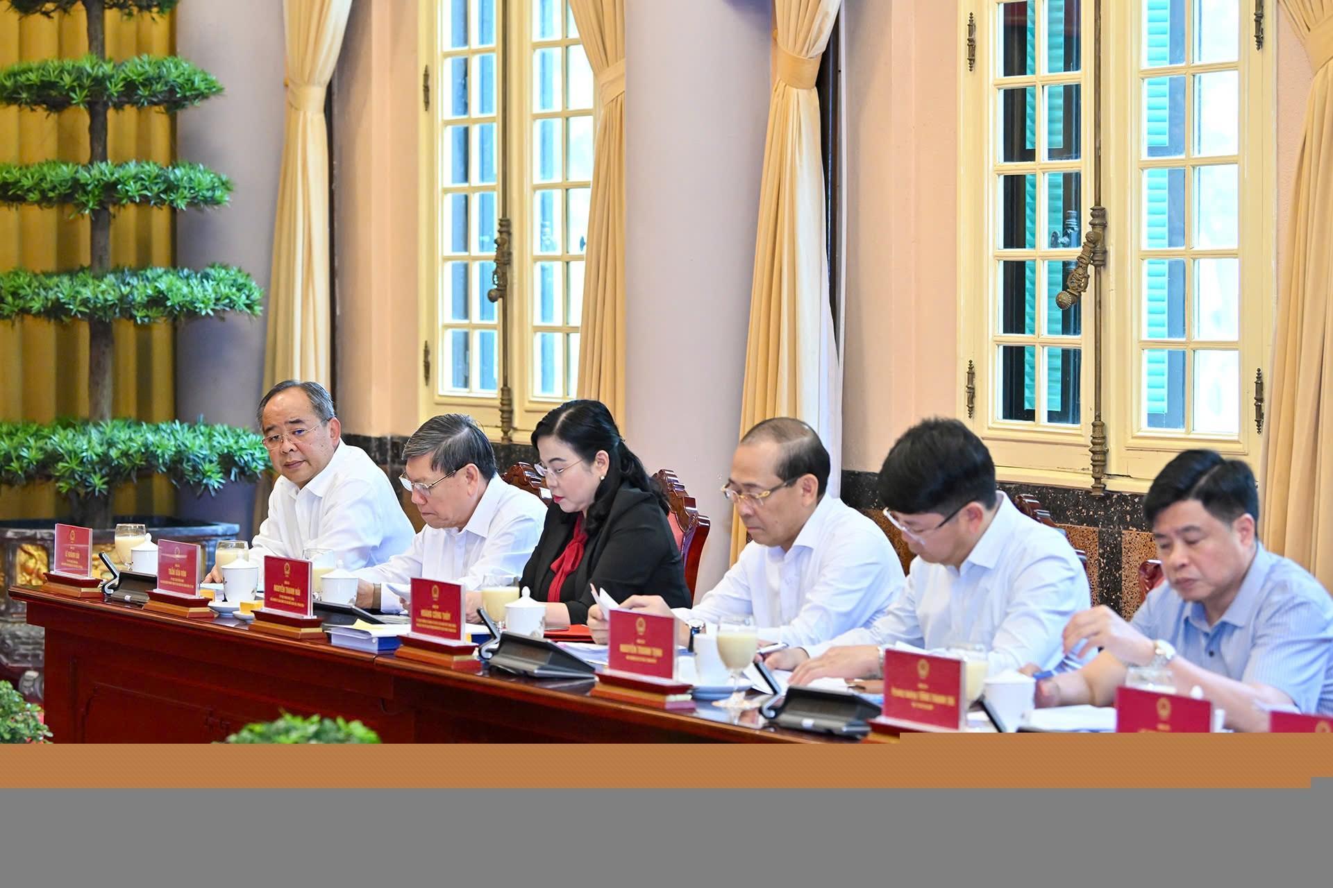 | Chủ tịch nước Lương Cường phát biểu kết luận buổi làm việc. |