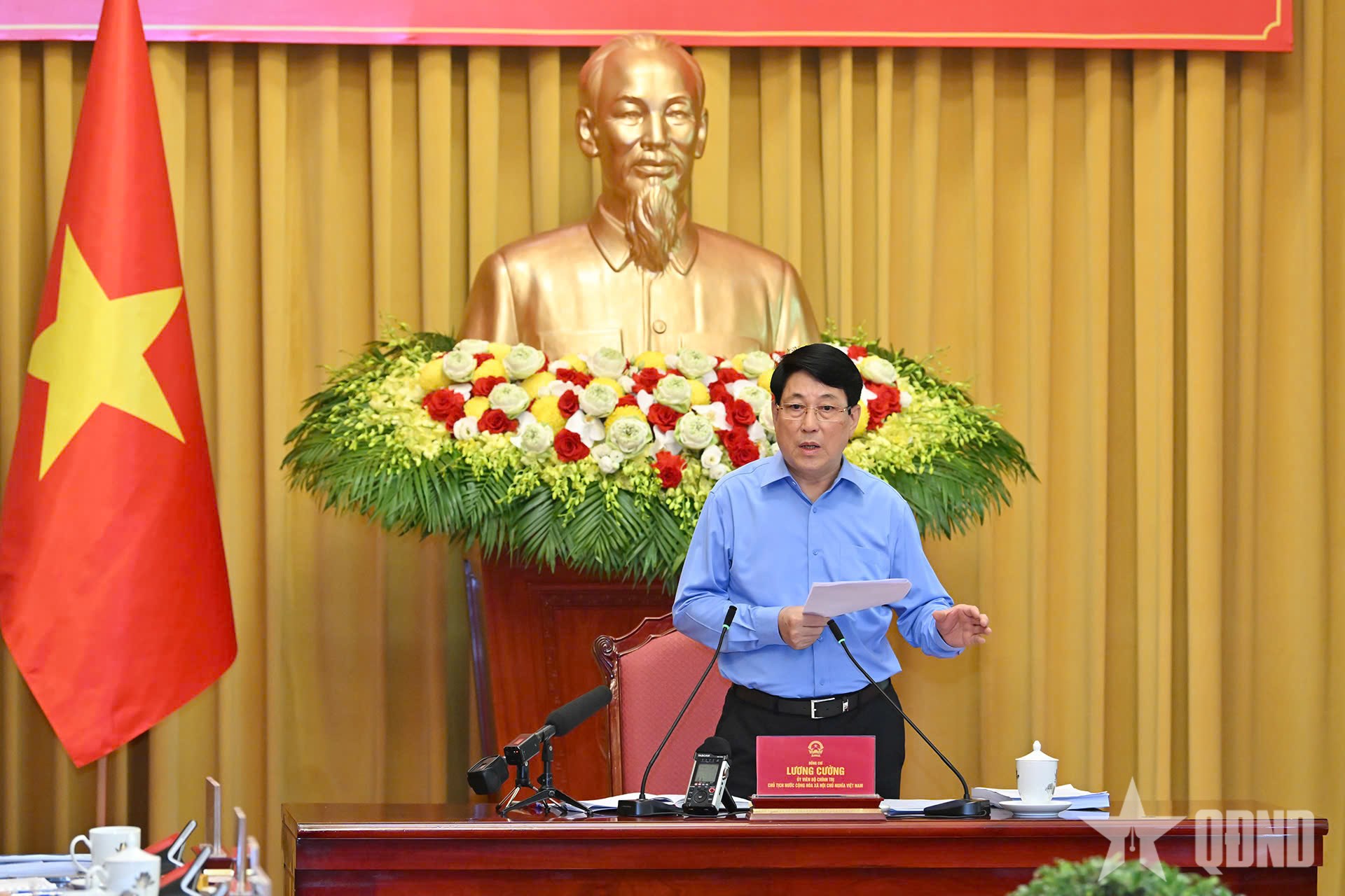 Chủ tịch nước Lương Cường chủ trì hội nghị. |