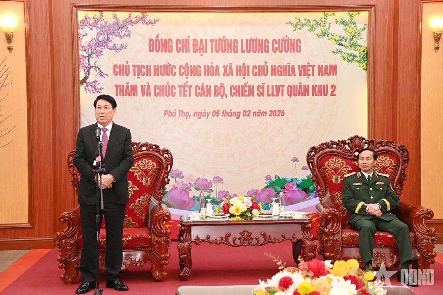 Sáng 5-2, Chủ tịch nước Lương Cường, Thống lĩnh LLVT nhân dân và đoàn công tác Trung ương đã tới thăm, chúc Tết cán bộ, chiến sĩ LLVT Quân khu 2 nhân dịp Tết Nguyên đán Bính Ngọ 2026.