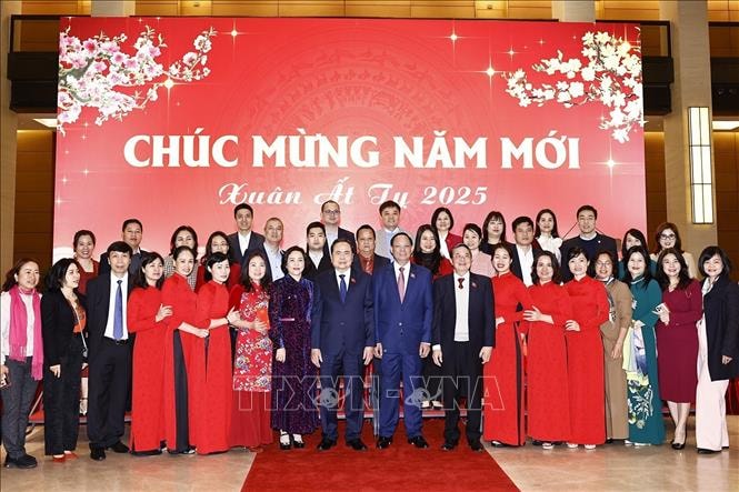 Tại cuộc gặp mặt, Chủ tịch Quốc hội Trần Thanh Mẫn bày tỏ vui mừng khi đất nước ta trong năm 2024 đã đạt kết quả toàn diện trên các lĩnh vực chính trị, kinh tế, văn hóa, xã hội, quốc phòng, an ninh, đối ngoại, xây dựng hệ thống chính trị; chúc mừng Quốc hội, các cơ quan của Quốc hội, cơ quan thuộc Ủy ban Thường vụ Quốc hội và Văn phòng Quốc hội đã hoàn thành tốt nhiệm vụ mà Bộ Chính trị, Ban Bí thư, Ban Chấp hành Trung ương, Đảng đoàn Quốc hội, Quốc hội giao.